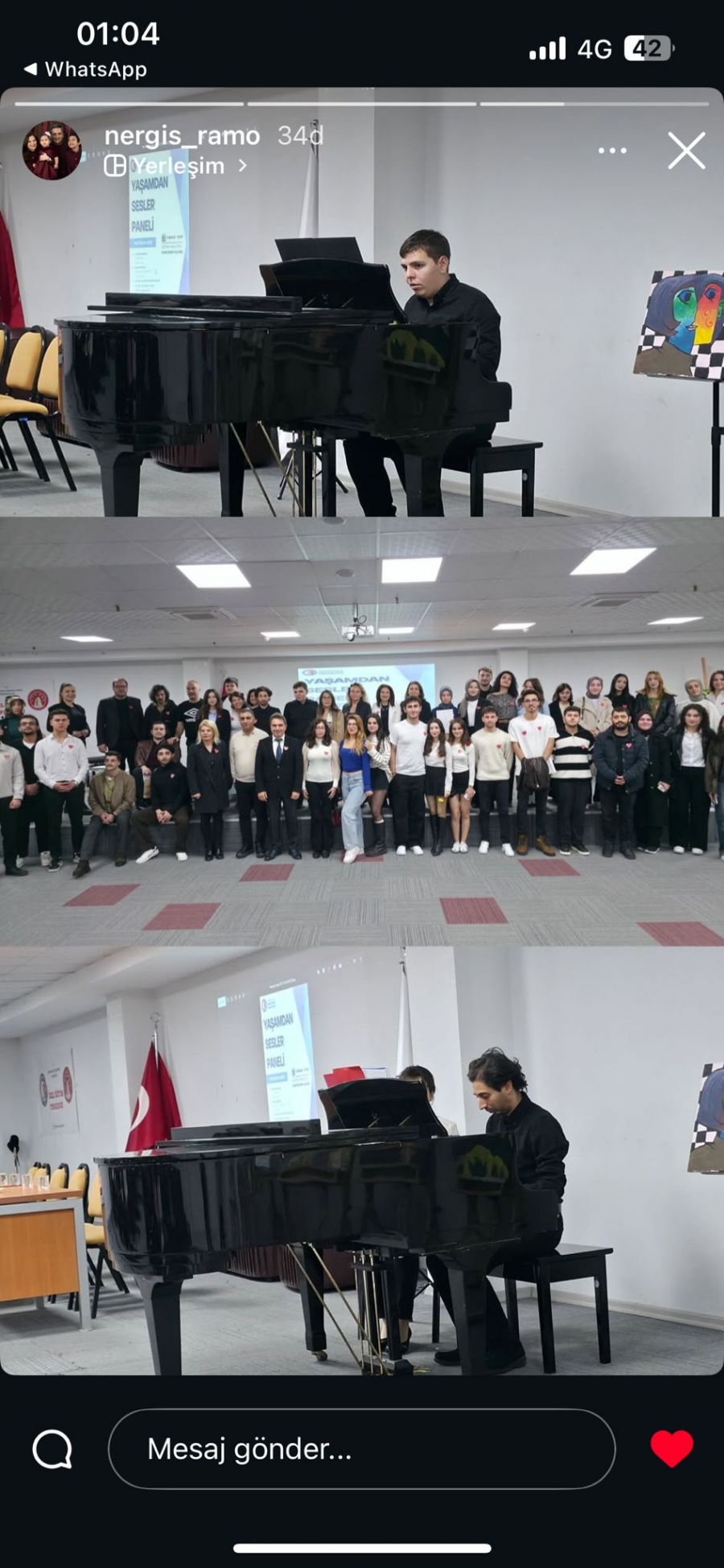 Açılış konuşmalarının ardından Denizhan Yalçınkaya ve Caner Serin tarafından gerçekleştirilen piyano ve şiir dinletileri, katılımcılar tarafından ilgiyle dinlendi.